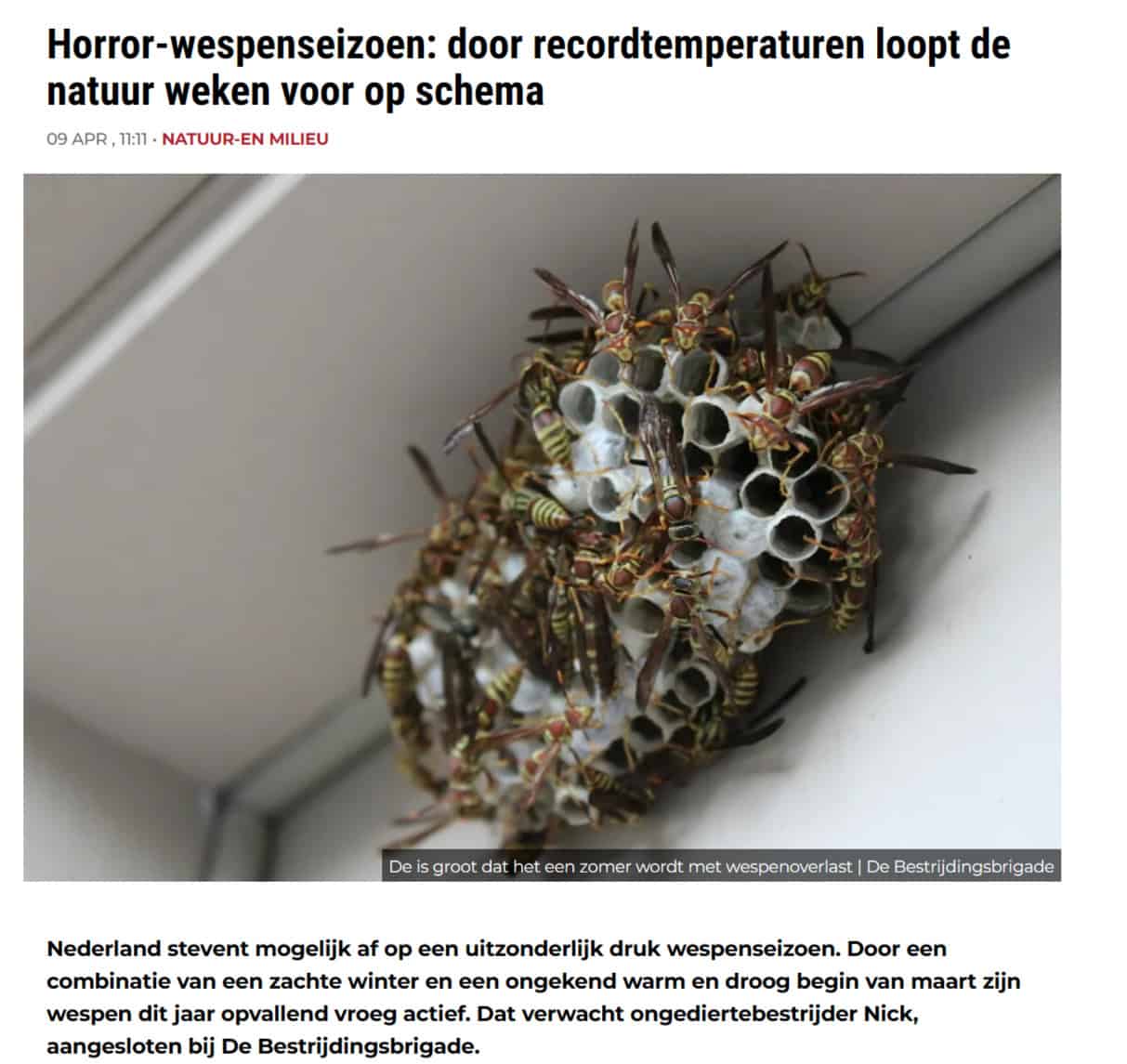 In de week van 8 april deden diverse media al verslag van een mogelijk horror-wespenseizoen, op basis van een persbericht dat ze die dag kregen. Gezien het aantal onjuiste beweringen in dit persbericht zou men kunnen stellen dat dit persbericht een week te laat was verstuurd en dat de media een week na 1 april alsnog gefopt werden. Enkele landelijke media alsook diverse lokale media namen het bericht of delen ervan over, mede omdat zij erop zouden mogen vertrouwen dat de inhoud van zo’n persbericht klopt.