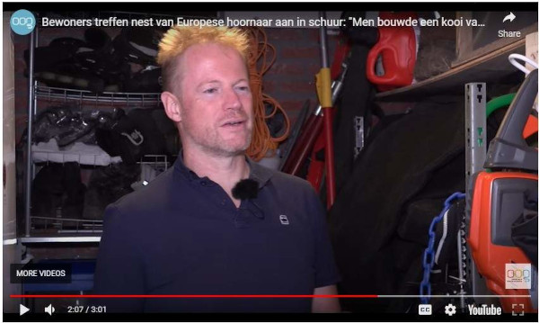 Bewoners treffen nest van Europese hoornaar aan in schuur: “Men bouwde een kooi van gaas”